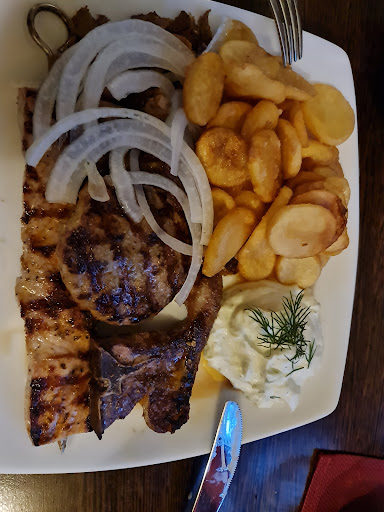 Read moreWenn viel auf dem Teller ist, dann ist das eigentlich ein gutes Zeichen. Wenn jedoch viel auf dem Teller übrig bleibt, dann ist das gewiss ein eher schlechtes Zeichen. Mag sein, dass man sich in diesem Restaurant bemüht - was bei Preisen von bis zu über 30 Euro je Hauptgang selbstverständlich sein sollte. Um so bedauerlicher, wenn ein Großteil der Speisen nicht mal ansatzweise aufgegessen wird, so wie es in unserer Gruppe (7 Personen) der Fall war. Der kulinarische Standard der Küche bewegt sich allenfalls auf Kantinen-Niveau. Das Fleisch war mitunter dermaßen trocken und „totgebraten“, dass man es nur mit Mühe von den Spießen herunter bekam. Um so öltriefender waren dafür die frittierten Kartoffelscheiben. Egal ob Fisch, Geflügel, Rind oder Schwein - sämtliche Speisen waren entweder zu stark oder zu schwach gewürzt. Da nutzt es dann auch herzlich wenig, wenn immer wieder kostenlos Ouzo nachgeschenkt wird, es sei denn, man benutzt ihn zur Betäubung der eigenen Geschmacksnerven. Auch in Sachen Nachspeisen insgesamt alles ziemlich enttäuschend. Die „heißen“ Himbeeren waren alles andere als heiß, vermutlich weil sonst die Sahne aus der Discounter-Sprühdose noch schneller in sich zusammen gefallen wäre, als sie es ohnehin schon tat. Obendrein war von den lediglich drei angebotenen Eissorten eine bereits alle. Den definitiv besten Eindruck machten die Vorspeisen, die größtenteils aus dem Konservenglas kamen und somit dem allgemein zu erwartenden Standard entsprachen. Fazit: Wir haben anderswo für erheblich weniger Geld schon bedeutend...