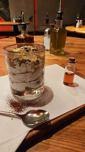 Read moreDas Zia Maria hab ich mit Sicherheit bei TikTok gesehen. Ein kleiner Laden in Prenzlauer Berg, nicht sehr gemütlich, aber zweckmäßig eingerichtet, mit Kunst an den Wänden. Eine Speisekarte gibt es nicht, dafür hingen im Vorraum, wo die Bestellungen aufgenommen werden, jede Menge Schildern mit den einzelnen Sorten. Wir haben übers Handy online geschaut. Es gibt mehrere Kategorien, über vegetarisch, vegan, mit Fleisch oder mit Fisch. Ich finde das Prinzip gut, dass man hier keine ganze Pizza bekommt, sondern immer nur größere Stücke. Also ich Stück wurde immer in 3 Streifen geschnitten. Diesen Streifen konnte man dann perfekt einmal in der Mitte zusammen klappen und dann konnte man perfekt reinbeißen. Wir hatten jeder drei verschiedene Sorten (was für uns etwas zu viel war) und jeweils dann drei Streifen Pizza. Ich hatte Salami, Rucola und eine Pizza mit Schinken, Pilzen, Rucola und Parmesan. Meine Freundin hatte mit Pesto, auch die mit Schinken und dann noch eine mit Ziegenkäse und Walnüssen. Angerichtet wurde alles auf einem Holzbrett und es sah fantastisch aus. Dünner, knuspriger Boden, reich belegt. Preislich fand ich es auch top, dafür dass es echt viel war, man eine große Auswahl hatte und wir mehr als satt waren. Die Rucola Pizza hat mir am besten geschmeckt und ich glaube, meine Freundin mochte die mit Pesto am liebsten. Das Einzige, was ich schlecht fand, war die Getränkeauswahl. Entweder war ich blind oder sowas wie Cola etc. gab es gar nicht. Den Service kann ich nicht beurteilen, da uns lediglich die Pizza gebracht wurde, den Rest hat man...