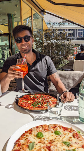 The service was very nice and friendly. Food and drinks were served fast. We ordered pizza and pizza was big enough. The taste was delicious however I felt it's a bit too salty.