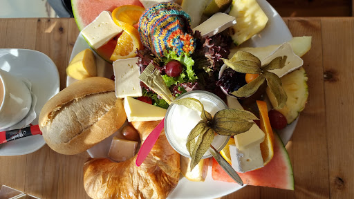 Nice cozy place in a very pretty little town... however, it is pricey for the amount of food given. We've ordered a combined breakfast (two different options) and they've combined both into a one big plate. One consisting in cheese, yogurt and fruits and the other one in cold meat. Tones of fruit fair amount of cheese, however one kind only, and only 4 (FOUR) slices of cold meat... quite disappointed when you pay €9 per plate + the coffee or drink option. I guess it is best to opt for an individual plate when combining two different breakfast options. Otherwise, it is a bit of a rip-off! Beautiful terrace and very...
