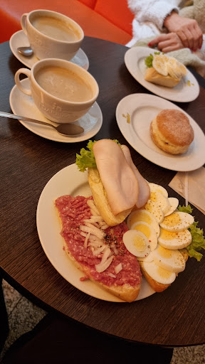 Das Café zum Hussiten Ich war mit einem Bekannten Frühstücken,es war gegen 7,00 Uhr ungefähr,ich frühstücke sehr gerne, wenn es auch ruhig ist und sich Leute ganz normal unterhalten, aber ein Mann mit einem Cappie, der nicht angestellt ist und einfach nur dort etwas hilft, er räumt Teller und Tassen vom Tisch ab , unterhält sich so laut mit die Kassiererin, das ich eine ganze halbe Stunde nicht in Ruhe meinen Café trinken konnte,geschweige noch mein Baguette in Ruhe essen konnte und die Kassiererin hatte auch schon gesagt, das er jetzt aufhören sollte,doch er hielt sich nicht daran,ich fand das unmöglich. Die Toiletten sehen auch nicht sehr gut aus, der Müllbehälter und die Türklinke genau so wie die Toilettenbrille mit Deckel sehen aus als wären sie schon 100 Jahre alt , ich würde sehr gerne, von die Frauentoilette ein Foto reinsetzen, aber das funktioniert hier nicht, also ich Frühstücke sehr ungerne dort,am besten man Frühstückt...
