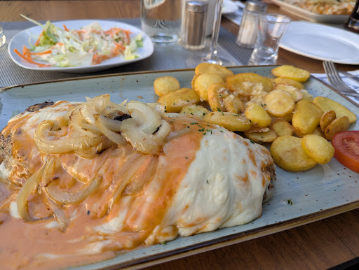 Der Kellner entgegnete mir dann, er könne mir nur die Hälfte vom Preis wieder geben. Ich verstand nicht. Wieso? Ich hinterfragte in einem NORMALEN Ton. Plötzlich wollte er mir drohen und meinte er würde die Polizei holen 🤣, ich entgegnete ihm, könne er gerne machen....es passierte nichts. (Ich hatte zu dem Zeitpunkt wohlgemerkt schon bezahlt gehabt) Dann stellte sich der Chef persönlich in die Küche und machte mir ein Neues. Das Fleisch wird in der Pfanne nicht auf dem Grill gebraten.