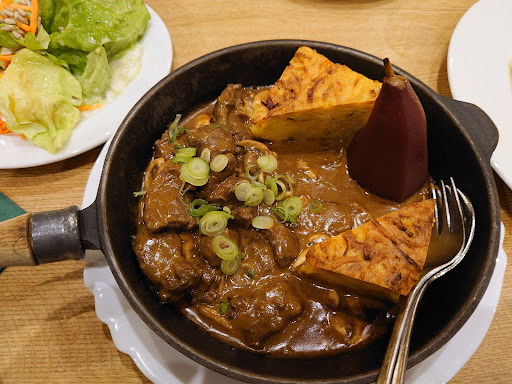Read moreDelicious (local) wild boar for lunch; I personally would have preferred a red wine gravy over the cream sauce; however very tasty. The meat was cut thin, very tender. The salads with ingredients from their own garden, the dressings made from scratch - could have a second or third refill, so delicious. I need to mention the walk downstairs to the bathrooms: the owner paid much attention to detail and decorated the walls and stairway beautifully - find out out for yourself. I am glad I trusted the reviews...