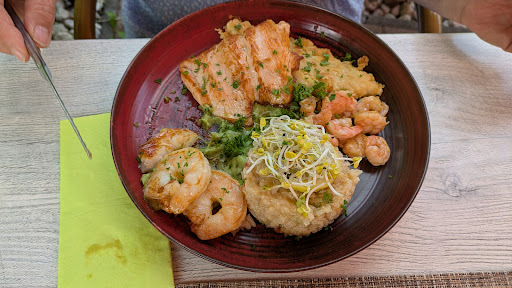 Ich bin wirklich enttäuscht, auf der Karte gibt es nicht viel Vegetarisches zur Auswahl.. Meine Mutter und ich haben uns dann für den Vegetarischen Burger entschieden, wobei dort Lachs drauf ist. Wir haben nachgefragt, ob wir ihn auch ohne Lachs haben könnten und auch darauf hingewiesen das Lachs nicht Vegetarisch ist. Die Bedienung meinte daraufhin, dass Lachs ja kein Fleisch wäre... Ich hatte auch keine Lust auf Diskussion und wir haben den Burger dann ohne Lachs bekommen. Geschmeckt hat er tatsächlich nach gar nichts..und die Pommes waren ab und an auch noch in der Mitte etwas roh. Wir haben auch erwartet das der Burger dann ein paar Cent günstiger wäre, da wir den Lachs abbestellt haben, aber er behielt den gleichen Preis. Ein weiteren Besuch wird es wohl nicht mehr geben. Finde das auch nicht mehr Zeitgemäß.