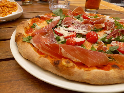 Read moreUrsprünglich wollten meine Freundin und ich hier nur ein Eis essen. Das Eis war cremig, reichhaltig und schmeckt nach guten, naturbelassenen Zutaten. Während wir das Eis gegessen haben, bemerkten wir die Siebträgermaschiene, also mussten wir wohl auch einen Kaffee bestellen. Dieser glich sich dem Eis an und war typisch italienisch mit dichter Crema und kräftigem Geschmack, jedoch nicht ohne eine feine Note. Während wir also den Kaffee trinken, riechen wir den Geruch des Ofen aus der Küche herüberziehen. Als dann auch noch eine fantastisch aussehende Pizza an uns vorbeigetragen wird, ist es um uns geschehen; wir bestellen auch Pizza. Die Pizza kommt zu uns und duftet nach dem Holz das den Ofen befeuert. Der Rand ist kross und doch luftig, der restliche Boden perfekt dünn aber stabil. Man sieht direkt, dass hier frische, qualitativ hochwertige Zutaten genutzt werden. Meine Freundin hatte eine Pizza mit Pilzen und Schinken bestellt, es sticht sofort ins Auge, das hier keine Schinkenscheibe genutzt wurde, oh nein hier liegen dickere Stücke aus einem ganzen Schinken auf der Pizza. Zu meiner Pizza Parma kann man nur sagen, ein Gedicht aus italienischer Feder.