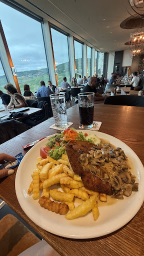 Read moreOrdered schnitzel and apple strudel. Dessert came first and young waiter said yes this was first which made me look up if this was customary 🤣 it isnt. Schnitzel was average. Lady waitress apologised when I asked and i checked if my main was ordered. Large plate , unfortunately schnitzel was over cooked, tasted slightly burnt. Everything is a bit too salty for me, preference wise Kinda has a canteen cafe vibe here. Great views but bit disappointed in my last dinner here . I’d come back and maybe...
