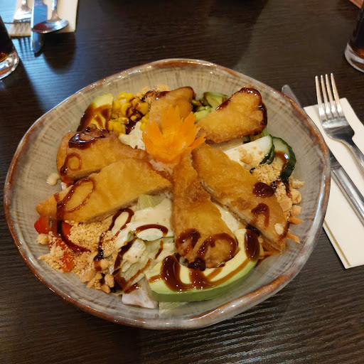 Read moreMein Sohn bestellte sich japanische Nudeln mit Hühnchen. Die waren völlig in Ordnung. Ich bestellte die gleichen Nudeln allerdings vegetarisch. Meine Tochter bestellte sich BratNudeln mit Gemüse. Als das Essen kam, bemerkten wir sofort, dass die Bratnudeln meiner Tochter lediglich aus Nudeln mit Röstzwiebeln bestanden. Es war keinerlei Gemüse enthalten. Auf Nachfrage wurden wir aufgeklärt, dass das in diesem Restaurant so sei. Nach wenigen Bissen bemerkte ich in meinen vegetarischen Nudeln kleine Stücke Hähnchen Fleisch. Offensichtlich waren die Nudeln meines Sohnes und meine gleichzeitig im Wok gekocht worden. 2 Minuten später fand meine Tochter in ihren Nudeln ein Stück Plastikfolie. Das war uns dann alles zu viel und wir haben das Restaurant verlassen. Seitens des Personals kein Wort der Entschuldigung. Mitten in der Nacht weckte meine Tochter mich, weil sie fürchterliche Magenkrämpfe hatte, die Sie noch niemals zuvor hatte. Ich habe nunmehr erfahren, dass vor wenigen Monaten der Besitzer gewechselt hat. Vorher war das Restaurant stets zu empfehlen. Aber dieser Besuch war absolut gruselig. Ein Fall für das...