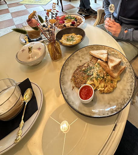 A hidden treasure! We discovered this cafe after a long bike ride and had a fabulous lunch. I enjoyed the mushroom wrap and my husband got the salad and hummus. We came back the next morning for breakfast and it was also tasty! I loved the red cappuccino (made with rooibos tea) and my tofu-Rösti. My husband liked his granola and side of scrambled chickpea “egg”. The decaf coffee was also really good. I love the variety and thoughtfulness of the menu, and each item is executed really well. Their cake case also looks so tempting! It’s difficult to find vegan or plant-based options in this area of Germany, let alone a dedicated cafe with such tasty and quality items! We will definitely keep coming back. P.S. I highly recommend sitting outside...