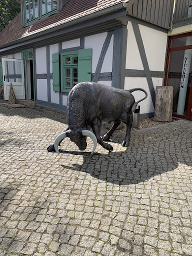 Read moreNach 5 Jahren leben in Bestensee, schaffte ich es endlich mal in das Steakhaus 1775 bei uns an der Schleuse. Grund war der Hochzeitstag 1.1 . Im Sommer bin ich schon ein paar Mal hier vorbeigefahren. Die Leute saßen entspannt in der Sonne auf den beiden Außenbereichen, links und rechts, des alten Guthauses. So angenehmes Wetter hatten wir nicht. Leider (oder Gott sei Dank) hatte es die Tage vorher geregnet und auch uns ereilte dieses Schicksal. Doch die großen Schirme hielten uns trocken. Am Eingang wird man vom Thema selbst, einem großen Stier, begrüßt. Doch bevor man sich setzt, lohnt ein Blick drum herum. Ein schönes altes Gemäuer. Mit Verstand wurde das alte Königliche Forsthaus, mit Lehm und Holz, restauriert. Eingebettet zwischen der Schleuse und einem kleinen Weiher, findet man noch eine Weinstube. Die Speisekarte die uns der freundliche Servicemitarbeiter überreichte, machte es uns durch die kurze dennoch ausreichende Auswahl leicht. 8 Steak-Gerichte kann man mit diversen Beilagen und Saucen oder Dips kombinieren. Dazu ein paar Burger oder drei Fischgerichte als Alternative. Natürlich gibt es auch Suppen und Salate sowie für danach einige Desserts. Und für die Jüngsten gibt es extra was zu essen. Zu gegeben Vegetarier oder gar Veganer haben es nicht leicht. Doch für den Fleischliebhaber wird laut Karte das Beste vom Rind hier auf einem Lavagrill bei 450 Grad zubereitet. Die Dame meines Herzens entschied sich passend für ein Ladies Cut, 180g, medium well, mit Folien Kartoffel und Kräuterbutter (2+). Und es war perfekt. Zart rosa und butterweich. Ich dachte ich gönne mir mal was wirklich gutes und bekam ein Dry Age Steak. 250g, medium, mit Grünen Bohnen im Speckmantel, Knoblauchbrot, Bratkartoffeln und Chilibutter (2). Mein Fehler. Ich hatte vergessen mir eine passende Sauce zu bestellen. Das Fleisch war sehr gut. Auch leicht rosa doch für die gesamt Menge für mich etwas zu trocken. Wie gesagt, mein Fehler. Dennoch war es ein gelungenes Essen, einem Hochzeitstag würdig. Zu Trinken hatte wir zwei Gespritzte, einen Cappuccino, ein Glas Malbec und einen Espresso. Preislich ist das Steakhaus 1775 mittig bis leicht gehoben angesiedelt. Das Dry Age gab es für 28 und das Ladies Cut für 20 Euro. Insgesamt waren wir mit knapp 80 Euro uns beide dabei. Ambiente, Essen, Service und die Sauberkeit sind eine sehr gute 2.