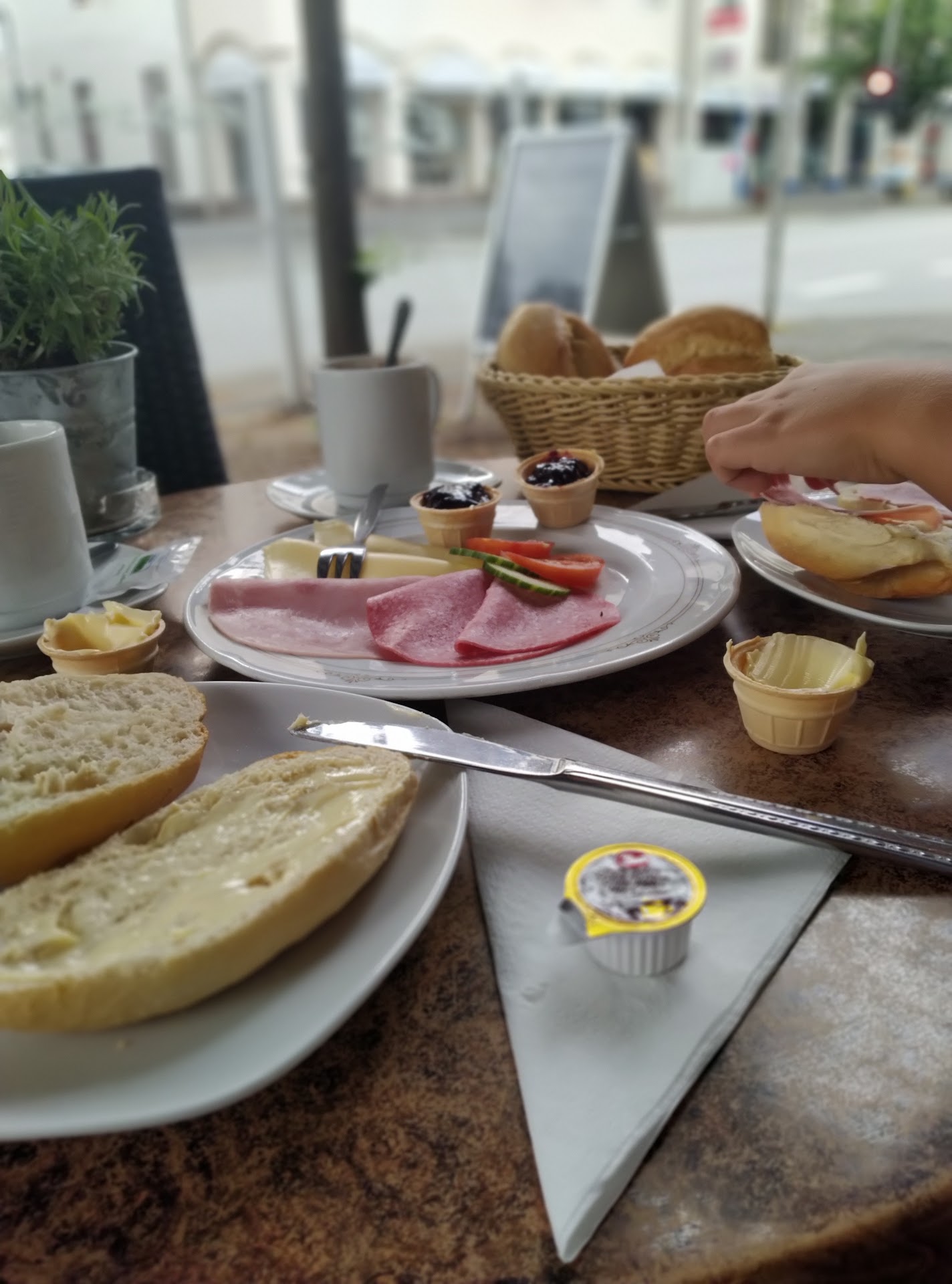 Read moreWir waren heute zum Frühstücken im Cafe. Die Bedienung (zwei Damen) waren nett, hilfsbereit und freundlich. Wir haben das Frühstück für zwei Personen bestellt. Es wurde auf einem Türmchen serviert. Die Auswahl war groß, die Qualität gut. Die Brötchen waren lecker und auch das Brot. Der Kakao schmeckte richtig gut. Wir hatten Rührei zum Frühstück, das war auch in Ordnung. Es dauerte etwas da viel los war. Das Warten hat sich aber gelohnt. Es wurde auch sofort alles sauber gemacht als die Gäste gegangen sind. Das Café war sauber, die Tische auch. Das Café ist gut besucht. Man kann hier auch draußen sitzen. Die Toilette sind sauber aber man muss Treppen steigen. Der Zugang zum Cafe ist aber ebenerdig. Wir gehen oft Frühstücken und dieses Café ist ein echter Tipp. Wir...