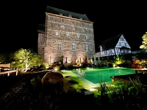 Bewertungen schreibe ich erst dann, wenn der Ärger verraucht ist, und man objektiver die Sachlage betrachten kann. Nach fast 1 Stunde Anfahrt kamen wir in einer wirklich sehr schön angelegten Anlage an. Hier hatte man uns nicht zu viel versprochen. Wir wurden höflich begrüßt. Ein klein wenig befremdlich war es, dass man sofort eingenordet wurde, was man hinsichtlich des angelegten Schwimmteiches darf und was nicht. Hier ist zu bemerken, dass wir nicht in Schwimmkleidung angereist waren. Auch, dass man maßloses Glück hat, überhaupt einen Tisch zu bekommen. Es wirkte auf uns ein wenig überheblich. Ein Lokal in dieser Preisklasse ist für uns nicht fremd. Wirkliche Klasse macht sich bemerkbar, wenn man auf Augenhöhe kommuniziert. Aber gut, wir nahmen bei unserem zugewiesenen Tisch Platz, wählten Speisen und Getränke und alles in allem wurden wir nett bedient. Die bestellten Speisen waren im Großen und Ganzen i. O. Besonders hervorzuheben ist der Hamburger mit Pommes frites und Soße. Dieses Essen war sehr gut. Jedoch war die Burgherrenpfannen alles andere als gut. Normalerweise sind wir bei Bratkartoffeln immer zurückhaltend. Selten bekommen Restaurant diese so hin, wie sie gehören. Nämlich in erster Linie knusprig braun. Hier schwammen besagte in einer Pfanne mit Gemüse im Saft und waren einfach nur wie zerkocht. Beim Fleisch war das Huhn sehr trocken. Aber das war noch nicht das schlimmste. Nachdem ich aufgehört hatte zu Essen, die Pfanne war fast noch voll, wurde gefragt, ob es geschmeckt hatte. Ich verwies auf die volle Pfanne und bemerkte, dass ich einen Fehler gemacht hatte. Gab sogar noch zu, dass es mein Problem ist, wenn man nicht gerne so viel Gemüse ist und mir einfach das Falsche bestellt hatte. Da bekam ich die Antwort, : Na, dann wissen sie ja, was sie das nächste Mal nicht bestellen! Danach gab ich jedoch noch den Hinweis, dass die Bratkartoffeln keine "Brat"kartoffeln im eigentlichen Sinn sind. Auch da wurde mit den Schultern gezuckt. Verwundert sind wir auch, dass in der Küche wohl nicht mal nachgefragt worden ist, warum das Essen zurückkommt. Wir gehen jedenfalls davon aus, weil keine Reaktion kam. Die dann entstandene Wut bei dieser mehr als unangemessenen Reaktion war enorm und hat uns den ganzen Abend verdorben. Einen weiteren Abend wird es darum ganz bestimmt...