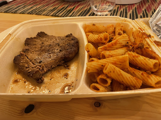 Ich hatte eine Pizza Bolognese bestellt, und die war lauwarm, eingetrocknet und sehr sparsam und schlecht belegt und hatte vier Kleckse Bolognese Soße darauf. Der Rand war so hart und trocken dass er nicht essbar war. Andere Pizzen der Bestellung waren ähnlich und haben eigentlich auch alle relativ gleich geschmeckt.