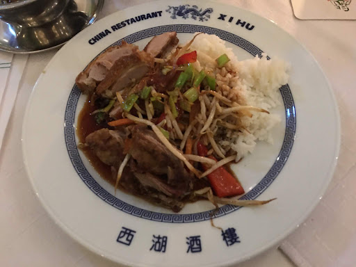 Zur Vorspeise gab es einen Pflaumen-Schnaps und Krabbenchips vom Haus. Habe die Ente mit Ingwer- Knoblauchsauce gewählt, welche auf einer Platte mit viel Gemüse gereicht wurde. Dazu die Ingwer-Sauce in einer extra Schale.