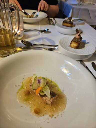 Read moreWir haben uns vom ersten Moment an sehr wohl gefühlt, wurden von nettem, kompetentem Service empfangen, durften ein abwechslungsreiches, tolles 10 Gänge Menü genießen aus einer interessanten Kombination von raffinierter Verarbeitung wie z.B. hauchdünne Steckrübenscheiben die als eine Art leicht geräucherter Schinken daher kamen oder einer Goldforelle in der Art des Rollmops, kulturellem Bezug durch westfälische Einflüsse und regionalen Zutaten, zartes Rindercarpaccio oder einer Creme Brulee mit Mädesüß um nur einiges zu nennen. Das ganze wurde von einer stimmigen Weinreise begleitet. Wir sind schon sehr gespannt auf einen unserer nächsten Besuche, vielleicht bei westfälischem Kaffeeklatsch oder einem Menü der Gourmet-Gang. Danke an Herrn Eberlein und sein Team. Uns hat auch die angenehme, sehr heimelige Atmosphäre im historischen Ambiente sehr gut gefallen, ein schöner Kontrast zu modernem Chic in anderen Gastronomien...