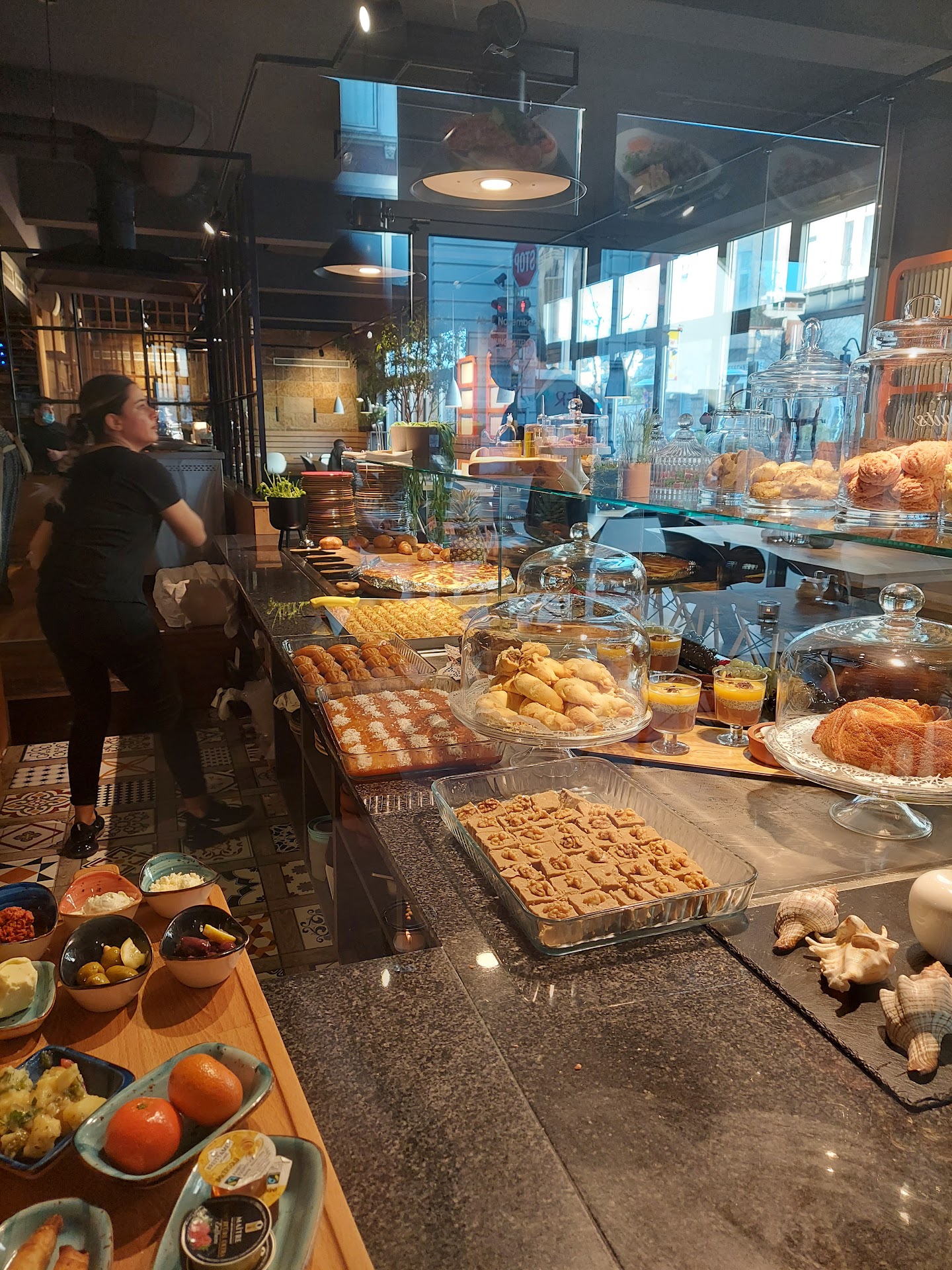 Ein weiterer Minuspunkt: Es gibt keinerlei Spielmöglichkeit für Kinder, was das lange Warten zusätzlich erschwert. Nach dem langen Warten kam schließlich das Frühstück. Geschmacklich war es in Ordnung, allerdings wurde ein Haar im Käse gefunden – ein absolutes No-Go, besonders in einem Lokal, das an Feiertagen stark besucht ist. Solche Tage erfordern umso mehr Sorgfalt und Hygiene. Uns fiel außerdem auf, dass das Personal überlastet wirkte, was sich in der Organisation widerspiegelte. Besonders unangenehm: Beim Bezahlen wurde – vermutlich im Scherz – gesagt: „Wenn es euch nicht gefallen hat, müsst ihr ja nicht bezahlen.“ Solche Aussagen wirken nicht professionell und hinterlassen einen negativen Beigeschmack.