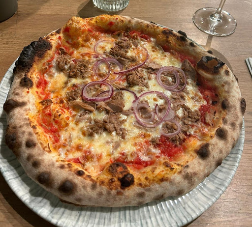 Die Pizza Tonno war teilweise verbrannt und bestand aus trockenen Tomatenhäuten anstelle einer richtigen Tomatensauce, was sicherlich inakzeptabel ist. Die Pizza Tonno, die ich bestellte, war völlig geschmacklos und ohne Gewürze. Es fühlte sich an, als ob sie einfach Teig mit Käse servierten, ohne jegliche Liebe zum Geschmack. Was mir auch nicht gefallen hat ,die paar Zwiebeln mittig auf der Pizza was für mich als optische Deko zu betrachten ist.
