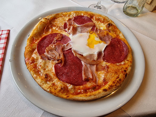 Read moreIch war nur auf der Durchreise heisst Montage.Die Empfehlung kam von einem Kollegen der schon mal dort gegessen hatte.Ich bestellte mir einen Salat,dazu Pizzabrot(in Form einer Pizza,geschnitten)und eine Pizza.Da waren auf dem Salat zwei Peperonis die aus dem Glas waren und noch voll im Saft standen.Das Pizzabrot war nicht besonders sch ackhaft.Lag wohl daran das der Pizzateig nicht richtig aufgegangen war.Ich hatte schlimme Befürchtungen wegen der Pizza.Auf meiner bestellten Name weiß ich nicht mehr aber es waren Sardellen drauf.Ich stehe darauf.Käse,Tomatensauce,Zwiebeln und Peperoni.Als sie kam sah ich das Unheil das Peperoni Glas wurde geleert und d zwar auf meiner Pizza.Habe alle herunter getan.Aber der Saft hatte sich schon verteilt.Also ich hatte genug vom essen.Von Genuß kann man nicht sprechen aber ich hatte Hunger.Ich werde 1. Nicht mehr auf den Kollegen hören. Und 2. Nicht mehr da essen gehen. Aber ich bin einer der mal ins Klo gegriffen hatte mit dem essen.Es gibt dafür genug andere die es...