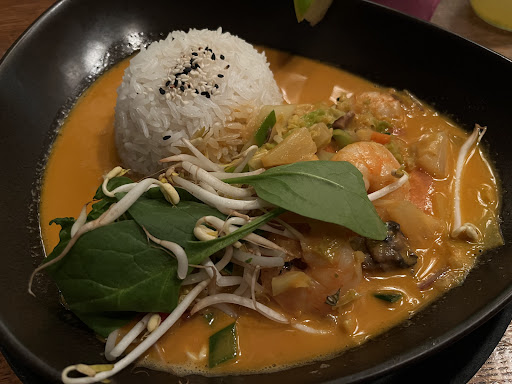 Read moreTasty pan Asian fare in a roomy space with monkey themed decor. The Thai curry with shrimp was generously sized; rice had good texture, a good number of large shrimp, and flavorful curry. The bubbly passionfruit orange homemade lemonade came in a small pitcher. Food is ordered at the counter with a loud and flashy buzzer announcing...