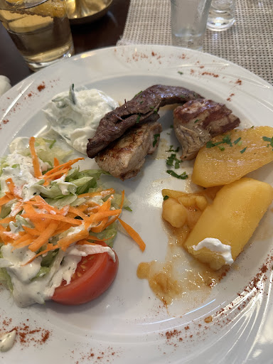 Read moreWenn man lediglich die Straße entlang fährt, würde man nie glauben hier so einen tollen Griechen zu finden. Wir waren nun 2x dort. Beim ersten Mal zu Zweit und haben dort Bifteki ganz klassisch bestellt. Das Essen kam fix aber nicht zu fix und war einfach nur ein Traum. Das Fleisch war super mit einem angenehmen Grillaroma. Beim 2. Mal kamen wir als 7er Gruppe spontan auf einem Samstag. Das Restaurant war komplett voll, obwohl erst 20 Minuten geöffnet. Trotzdem wurde uns vom Kellner noch ein Tisch gebaut. Bestellt haben wir dieses Mal Gyros. Da bin oft vorsichtig, da man häufig eine Art Gulaschfleisch bekommt, dass häufig nicht von bester Qualität ist (zb das Supermarktgyros). Aber auch hier wieder mal der Wahnsinn. Es kam direkt vom Drehspiess und schmeckte einfach nur hervorragend. Abgerundet wird das Ganze mit den fairen Preisen. Gibt es bessere Griechen? Bestimmt. Jedoch wird es nur wenige mit einem derart gutem Spagat aus Preis-/ Leistung geben. Der Aussenbereich könnte etwas Liebe vertragen. Trotzdem...