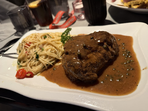 Neben den italienischen Klassikern bietet das Restaurant auch Fleischgerichte an, darunter argentinische Rumpsteaks und Rinderfilets, die gegrillt und mit verschiedenen Soßen serviert werden. Fischliebhaber kommen ebenfalls auf ihre Kosten mit Gerichten wie gegrilltem Seezungenfilet in Cognac-Sahnesoße oder Zanderfilet in Meerrettich-Sahnesoße.