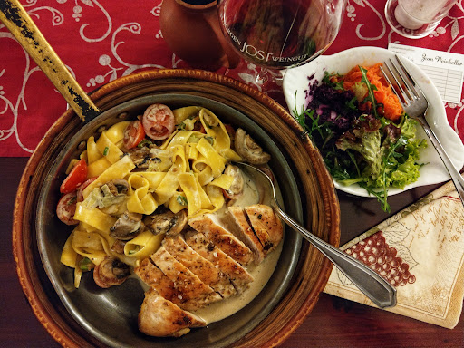 Steps away from the river Rhine, this place tucks away from the road with casual greenery and rustic tents. Food is great! The pork schnitzel roll, house special, is tender. Jazzed with the red (maybe paprika based) sauce, the pork schnitzel roll tastes much juicier than just the simple schnitzel. For beef special, I can’t think of anything better than this simple beef plate - lightly cured beef boiled to tender. It’s flavorful all by itself but paired with the dill sauce.. the fatty mouth feel rounds out the dish rich but not greasy nor heavy. The pan fried potatoes come with the beef are lightly seasoned, cooked to tender yet with a bite - perfect...