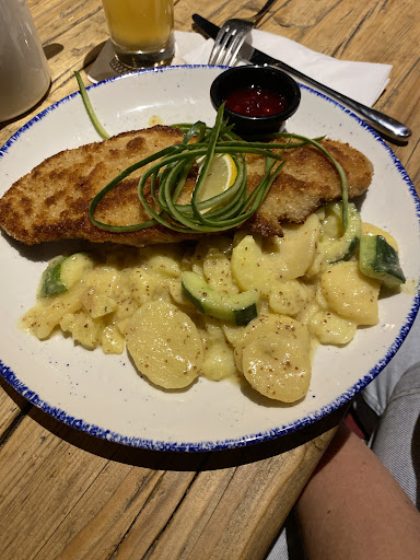 I don’t leave my comments often as most of the restaurants I have been to were quite okay. But this time it was really a bad experience, I would like to say something. Unfortunately the Schnitzel was a bad choice. The meat smelt a little bit, I assume it’s not fresh and the oil also smelt. In total it’s a bit expensive for this quality. The hausgemachte Frikadelle was also only okay I would say. I saw some other guests leave the half of the nudle on the plate, I assume it’s also not a good choice, but it’s only my assumption. Just want people to avoid ordering the food that are not tasty, maybe the other dishes on the menu are good but I definitely will not come again.
