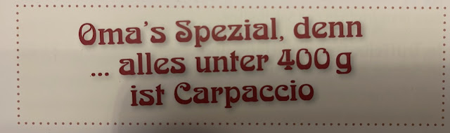 Die Speisekarte originell, unterhaltsam und fantasiereich gestaltet. Auf so eine Idee muss man erst mal kommen. Gern haetten wir - Oma so lieb... - gesungen, doch da wir totale musikalische Tiefflieger sind, hatten wir Angst, dass Oma bei unserem Gesang mit dem Nudelholz um die Ecke kommt. :) Danke für die liebevoll gestaltete Einrichtung. Vielen Dank an das Personal, die alles super, sauber und freundlich am Laufen halten, im Innen- sowie im Aussenbereich. Hochlobend werde ich Sie weiter empfehlen. Bleiben Sie gesund und geduldig. Sicher bin ich wieder Ihr Gast. LG A. aus...