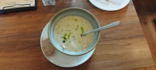 Ansprechendes, gut beworbenes Konzept, schöne Location. Erster Eindruck: ungebügelte Stoffservietten machen mich unsicher: sind die frisch oder noch vom Vorgänger? Speisekarte überschaubar, klein gedruckt, Preise als einfache Ziffer (ohne Währungsangabe) direkt hinter dem Text ausgewiesen, Überschriften wie "Vorspeise" oder "Hauptgericht" fehlen.. Bestellt habe ich Zwiebelsuppe und Wurzelgemüse mit gebackenen Grünkohl. Meine Frage, ob das Wurzelgemüse zum satt werden reiche, wurde bejaht "sehr gute Wahl, in Kombination mit Zwiebelsuppe perfekte Wahl". In der Suppe waren drei kleine, etwa 1x3 cm Brotstücke mit überbackenen Käsestreusel drauf. Sie ließen sich mit dem Löffel nicht teilen. Eines davon versuchte ich zu beißen. Dies war kaum möglich, den Rest davon musste ich wieder auf den Teller zurück legen. Der Geschmack des Brotstückes war nicht frisch. Die beiden anderen Stücke ließen sich in der Suppe auch nicht einweichen und wurden ebenfalls auf dem Teller zurück gelassen. Die Bedienung wurde informiert und wollte es der Küche ausrichten. Das Wurzelgemüse bestand aus vier Teilstücken Pastinake auf etwas Püree. Der Grünkohl fehlte. Auf Nachfrage erhielt ich die Auskunft, der Grünkohl sei nach Aussage der Küche "aus". Kurz drauf wurde mir ein Teller mit ein paar wenigen Blättern Blattsalat für mich und meine Bekannte mit der selben ursprünglichen Bestellung als Ausgleich hingestellt. Später kam die Bedienung, entschuldigte sich für die Unzulänglichkeiten des Abends und bot als Entschuldigung eine Nachtisch-Auswahl an. Es folgten zwei Nachtische mit vier Tellern für vier Personen. Alles hatte sich zeitlich gezogen, so dass wir unserer Befürchtung, nicht rechtzeitig zum Kinofilmbeginn nebenan Ausdruck verliehen. Uns wurde versichert, der Film würde ohne uns nicht starten. Dies war leider nicht der Fall, zudem standen zu wenig Stühle, der Raum war Recht frisch. Wenn in der Küche etwas "aus" ist, erwarte ich, dass ich gefragt werde, ob ich eine Alternative bestellen möchte. Ich möchte nicht einfach nur einen Teil der Bestellung erhalten und auf Anfrage informiert werden. Zu guter Letzt wurde eine für diese Leistung Recht "anspruchsvolle" Rechnung gestellt. Die Rechnung hätte ich als gerechtfertigt empfunden, wenn alles gepasst hätte. Eine offene Schauküche ist interessant und gibt dem Gast wertvolle Einblicke. Leider sieht der Gast auch, wenn der Koch sehr ungehalten auf die Bedienung reagiert. Ich gehe davon aus, dass das Team diese Bewertung zum Anlass nimmt, gemeinsam eine Lösung zum kundenfreundlicheren Umgang zu finden. Die Location und das Konzept hätten es verdient. Es kann immer etwas schief gehen, wenn aber Anspruch und Realität weit auseinanderklaffen, ist die Geduld und das Vermögen, darüber hinwegzusehen bei mir als...