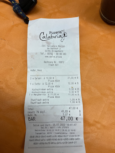 Nachtrag 05.06.:Leider entspricht diese Antwort so nicht den Tatsachen aber das lasse ich jetzt mal stehen. Fakt ist, dass man hier null kritikfähig ist, wie die vielen Antworten zeigen! Entweder wird es auf neue Mitarbeiter geschoben, die nichts dafür können, denn diese sollten auch vernünftig angelernt werden. Und zwar von Ihnen! Was können Gäste für Ihr Personalproblem? Zum Glück finden Sie Mitarbriter, nur müssen SIE sich auch Zeit für jene nehmen und unterstützend zur Seite stehen, gerade am Anfang! Oder es wird diskutiert, dass der Kunde unrecht hat. Ich habe selten eine Pizzeria erlebt, die so von sich selbst überzeugt und rechthaberisch ist! Die Calabria hat mal stark angefangen aber auch stark nachgelassen! Und das ist eine Meinung die in unserem gesamten Bekanntenkreis stark vertreten ist! Der Service und die Aufmerksamkeit am Gast ist mittlerweile schlecht. Die Portionen werden zunehmend kleiner, 5 Ravioli auf einem Teller, maximal lauwarm???, Getränke werden gar nicht angeboten usw. Für uns hat es sich nach den letzten Besuchen und vor allem nach den Antworten auf die vielen Rezensionen hier erledigt. Kein Bedarf mehr an Calabria! —————Ich hatte vor ca. 2 Wochen einen Tisch für Karfreitag vorbestellt für 15 Personen. Auf Wunsch des Chefs rief ich 2 Tage vorher nochmals an um die genaue Personenzahl durchzugeben! Zitat: „ Wir brauchen jeden Platz, also geben Sie Bescheid wieviel Leute Sie genau sind“! Das habe ich absolut verstanden! Bei meinem versprochenen Anruf wurde das dann aber nebensächlich behandelt und warum ich denn anrufe! Also habe ich das Gespräch wiedergegeben und noch 3x meinen Namen genannt. Als wir dann kamen, war es doch recht befremdlich, dass für weniger Personen gedeckt war, obwohl ich explizit bei meinem Anruf die Personenzahl genannt habe. Der Chef schob dann schnell einen weiteren Tisch an! Nun gut,…! Leider hat die Getränkeaufnahme nicht gut geklappt, die 2 jungen Damen waren scheinbar neu und etwas überfordert, sodass wir mehrfach nachfragen mussten! Positiv erwähnen möchte ich, dass alle Essen relativ zeitgleich kamen! Zum grossen Teil waren die Essen schmackhaft, aber vereinzelt waren die Nudeln kalt, das Essen falsch aufgenommen worden (zum Lachs waren andere Beilagen ursprünglich bestellt) oder man hat sich einfach anderes vorgestellt! (Rosmarinkartoffeln sind in der Regel keine Bratkartoffeln). Ausserdem wäre es schön gewesen wenn bei Ankunft die leeren Teelichter gewechselt gewesen wären.Wir mussten erst darauf aufmerksam machen. Bedauerlicherweise gab es auch trotz der zahlreichen angebotenen Eisbecher in der Karte keinen einzigen! Es gab einfach kein Eis!! Und das an Ostern, obwohl es in der Karte steht und eine eigene Eisdiele vorhanden ist! Grosse Verwunderung! Und auch eine gewisse Enttäuschung! Zum Abschluss wollte man mir dann keinen Beleg über die Speisen geben, da „ja Ostern ist und das Essen eh nicht absetzbar ist!“ Ich wollte das Essen nicht absetzen sondern einfach meinen Beleg! Die Gründe sind nicht relevant! Nach kurzem Hin und Her habe ich diesen dann bekommen! Mein Fazit: Service schwach (bitte stellt neuen Mitarbeiter/innen am Anfang eine Hilfe zur Seite! Sie kannten auch die einzelnen Gerichte nicht), das Essen war im Durchschnitt gut! Am Ambiente kann man arbeiten! Mit viel gutem Willen komme ich zu dieser Punktevergabe. Wir werden dem Ganzen wieder eine Chance geben, da es in der Vergangenheit besser war in allen Bereichen. Im Grossen und Ganzen waren wir aber zufrieden, vor allem die Vielfalt der Speisen spricht an! Die Damen die uns bedienten waren auch sehr freundlich und versuchten ihr Bestes. Am Nebentisch war man auch nicht zufrieden, vielleicht war es einfach kein guter Tag! Mir ist bewusst, dass Kritik hier nicht gerne gelesen wird von den Inhabern! Das sieht man an den Antworten. Bitte sehen Sie es auch nicht unbedingt als Kritik sondern eher als Verbesserungsvorschläge an! Sie haben das Glück, in Birkenfeld fast Monopolstellung zu haben, aber ruhen Sie sich nicht darauf aus!