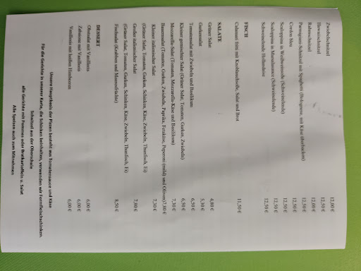 Read more2019: Gutes, durchschnittliches Restaurant. Die Pizza schmeckt wirklich gut und vor allem die "Schnitzel-Calzone" ist sehr zu empfehlen. Allerdings wartet man des öfteren durchaus sehr lange auf sein Essen, da der Koch Bestellungen selbst liefert. Vielleicht sollte man dieses Konzept überdenken und einen Lieferservice nicht anbieten, wenn dadurch Gäste im Restaurant deutlich länger auf ihre Bestellung warten müssen. Edit 04.06.2021: Heute habe ich Essen zum Abholen bestellt. Als ich es nach den geplanten 35 Minuten abholen wollte, war die Bestellung bereits...