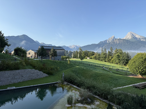 Read moreWir haben zwei Nächte im Kulturhof verbracht und dort auch zu Abend gegessen. Der Kulturhof ist wunderschön, die Zimmer geräumig, der Aussenbereich weitläufig, gepflegt und bietet eine fantastische Aussicht auf Watzmann und Hochkalter. Dennoch gibt es ein paar Dinge, die uns leider gestört haben: Die Allergenkarte des Restaurants könnte falscher kaum sein. Das Cordon Bleu ist laut Karte glutenfrei, auf Nachfrage aber dann doch nicht. Der Burrata (laut Karte glutenfrei) wird mit gerösteten Croutons serviert, die Boullabaisse (laut Karte auch glutenfrei) mit Baguette. In letzterem Fall immerhin auf einem separaten Teller, beim Burrata wurden die Croutons einfach darübergestreut. Selbst die Creme Brulée wird mit Joghurt-Crumble serviert (nicht glutenfrei wie in der Karte angegeben). Für einen Allergiker ist hier zu speisen gefährlich und mit dem Preisniveau des Restaurants in keinster Weise vereinbar. Der Wellness-Bereich ist sehr klein (2 Saunen, kleiner Schwimmteich); Das ist an sich kein Problem. Ungünstig ist aber das Fehlen von Verhaltensregeln für Sauna und Pool. Wir haben in der Sauna Jugendliche in Badebekleidung vorgefunden, die munter ihren Nachmittagssnack laut schmatzend konsumiert haben. Die Eltern saßen daneben. Möglicherweise war diese Familie zum ersten mal in der Sauna und weiß schlichtweg nicht, wie man sich dort üblicherweise verhält. Mit dem Anbringen von „Sauna-Knigge“ ließe sich so etwas leicht verhindern. Gleiches gilt für den Schwimmteich. Ist der als Ruhezone oder als Erlebnisfreibad für Familien gedacht? Wir haben uns auf einen erholsamen Urlaub mit Zeit zum Lesen gefreut. Wenn rumgebrüllt, reingesprungen und Ball gespielt wird, ist das für Familien sicher toll, für andere aber wenig erholsam. Im Restaurant laufen tlw. Kinder barfuß herum, im Rest des Hotels sogar Erwachsene. Das Personal scheint sich hieran nicht zu stören. Alles in allem kann man im Kulturhof einen tollen Urlaub verbringen, wenn man sich an den obigen Punkten nicht stört. Aus meiner persönlichen Warte ist das Preis-Leistungs-Verhältnis aber sehr schlecht. Man bekommt für sehr viel Geld „nur“ ein architektonisch schönes Hotel ohne wirklich nutzbaren Wellnessbereich. Für den Betrag, den wir hier bezahlt haben, sind wir andere...