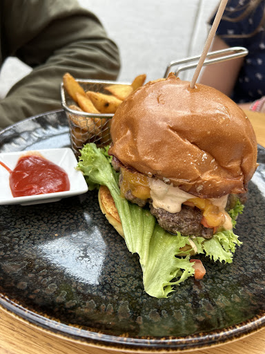 This is a really smart little restaurant I will probably try again for breakfast. We got there as the menus were changing from breakfast to lunch. The waitress got my order wrong and I got the wrong kind of burger. I wasn’t there when the food was served (taking kid to the bathroom) and nobody came to check on us. I had three kids with me so I wasn’t able to go inside to ask. The burger I got was still nice, maybe a little heavy on the bbq sauce. It was also very expensive, €15 for a burger...
