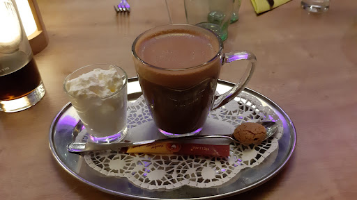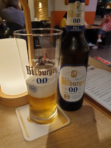 Read moreModernes Lokal mit italienischem Flair. Wir hatten einen Tisch reserviert für 7 Personen. Es war an einem Mittwoch und der Betrieb war überschaubar. Nicht schlimm für uns. So konnten wir uns relativ gut unterhalten und mussten nicht über die Länge vom Tisch uns anschreien ;) Wichtige Info im Vorfeld: Immer besser einen Tisch reservieren. Hier ist es besonders am Wochenende oft voll! Die Bestellung ging recht zügig. Wir wurden im Laufe des Abends von zwei Kellnerinnen freundlich bedient. Auf Fragen über den Unterschied zwischen zwei Gerichten und dem Inhalt bekamen wir kompetente Anworten mit denen wir was anfangen konnten! Hier merkte man, dass die Bedienung die Menüs kennt. Einige von uns bestellten als Vorspeise eine Kürbissuppe, die uns aber nicht schmeckte, da irgendeine Zutat drin war, wo der Koch dachte es würde den Gästen munden. Leider hat es uns nicht gemundet und auch die Bedienung sagte, das sei nicht ihr Geschmack. Die einen mögens, die anderen nicht. Wir fanden, dass dieser Geschmack bzw. Zutat (Sie fällt mir jetzt auch leider nicht ein, das Treffen ist schon einige Wochen her) nicht in eine Kürbissuppe gehört! Deswegen eigentlich 4 Sterne, aber die Bedienung hatte eine Lösung parat und deswegen 5 Sterne ;) Nach einer halben Stunde etwa bekam JEDER innerhalb kürzester Zeit sein Essen serviert! So musste keiner lange warten. Das war schon mal ein großes Plus-Punkt. Das Essen war optisch appetitlich dargestellt und hat auch lecker geschmeckt. Ich hatte nach dem Essen noch eine Dark-Cocolate bestellt, wie man auf dem Foto sieht. War ebenfalls lecker! Fazit: Freundliche und kompetente Bedienung Bezahlung am Tisch bar oder per EC Essen lecker Vorspeise (Suppe) nicht so toll Wir waren schon einige Male dort und kommen...