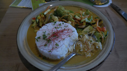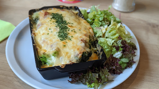 Such a wonderful place! Best vegan food in Bayrischen Wald! It's worth the trip from anywhere in the Bayrischen Wald! The owner is a very nice and friendly lady who welcomed us with a big smile and we had a chat about our vegan kids :) The menu is simple and short but the food is delicious, fresh and portions are very generous. All vegan or can be vegenized ;) They also offer vegan homemade ice cream and cakes, trying Torte is a must! Great place for lunch, dinner or coffee and cake break. It's very colorful, easy going, friendly and sooo tasty! Very family friendly, kids friendly, animal friendly place. Few play corners for kids to play inside, on the terrace/in the garden and additional space on the side with sand, toys and a little garden house. They have a big outdoor area where kids and dogs can play. In the back, they have rescued pigs and a few bunnies. They also sell...