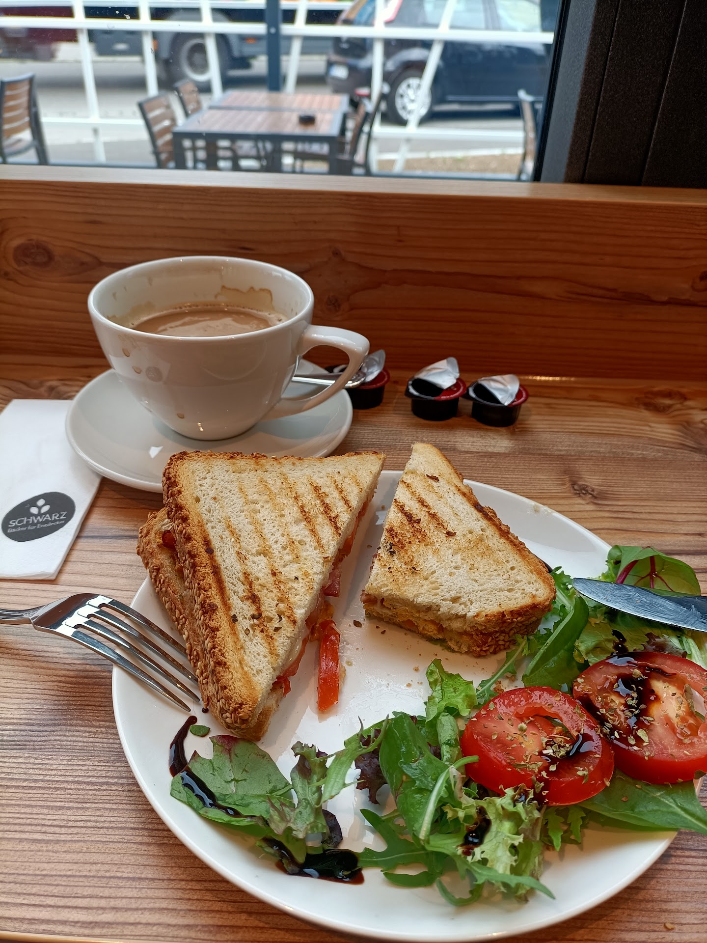 Read moreAlso ich bin entsetzt über die Kommentare, die hier manche manche Leute ablassen. Toilette nicht abschließbar, Nachfrage Butter auf Käsesemmel, Terrasse an der Straße... 🤔😉so man kann auch die andere Terrasse wählen, die abseits von der Straße liegt, die Toiletten sind abschließbar und sauber, dass man in den Vorbereitungsraum reinschauen kann, ist der neue Trend. 😉👍🏼 wir hatten für heute einen Tisch gebucht und haben auch die Kritik gelesen und wollten schon abschweifen, nein, mach dir selbst ein Bild... 😅🧀🥐☕da ich selbst in verschiedenen Bäckereien schon gearbeitet habe, kann ich mir echt ein Urteil erlauben und ich muss sagen, top!! drei Leute, super nett super schnell im Arbeiten, freundlich großes Lob👍🏼👏🏼👍🏼 die Nörgler sollten mal sich ein bisschen mehr umschauen, dann bemerkt man dass heute im Einzelhandel überall Personalmangel ist und die wenigen, die da sind, die Arbeit für drei/ vier Leute erledigen müssen das dann irgendwann die Puste raus ist, ist selbstverständlich, von den niedrigen...