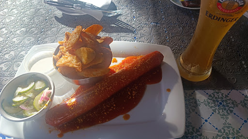 Wir waren auf der Suche nach einem Restaurant an einem Montag, wo ansonsten sehr viele Restaurants Ruhetag haben. Dieses hier nicht. Jedoch würde ich es nicht als Restaurant sondern eher als Imbiss mit Sitzmöglichkeiten beschreiben. Trotzdem es hier unglaublich schmutzig auf und unter den Tischen war, sinc wir geblieben denn die Essensbewertungen waren ja ok. Allerdings wundert es mich wo diese ganzen 5* Bewertungen her kommen. Hab mir die Profile nicht näher angeschaut. Liebe Inhaber, bitte macht sauber, statt Handy zu zocken wenn nix los ist. Dann kommen vielleicht auch die Einheimischen zu euch essen. Erstmal zum Essen. Für den Preis ist es richtig gut. Die Currywurst ist mega, das Curry selbst weniger. Tipp: günstig selbst machen, Rezepte gibt's bei Chefkoch.de, damit würde es unschlagbar genial werden. Der Gurkensalat als Beilage: super Idee, besser als Salatbeilage die eh keiner isst. Service: 2 superfreundliche nette Mitarbeiter/Inhaber... ? Aber die Sauberkeit... man traut sich nicht, das Besteck neben dem Teller abzulegen. Unter dem Tisch/Nebentisch Krümel, Dreck unč schmutzige Serviette von den letzten Gästen. Der große Spiegel muss auch mal geputzt werden und der Laden ist im Allgemeinen Sanierungsbedürftig. Aber: bitte macht Sauber. Das ganze hat so viel Potential und es wäre schade wenn das nicht...