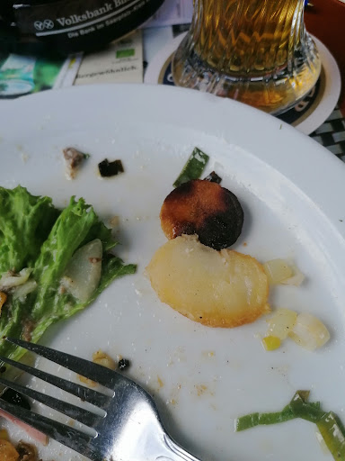 Also: zu fünft hatten wir Gulasch, gegrillten Lyoner und 3 Gerichte mit Rindfleischsalat. Die "knusprigen" Bratkartoffeln waren fett, teilweise wie vom Tod erschrocken und teilweise verbrannt. Der Lyoner kam braun verschrumpelt an den Tisch und die Fleischsalate schmeckten nur nach Industrieessig. Beim Kreativgericht "Nonne trifft Mönch" gesellten sich je ein gehäufter Esslöffel Wurst-(vorgeschnittene Beutelware) und Rindfleischsalat zu den missglückten Bratkartoffeln. Dafür sind auch €11,80 deutlich zu viel.