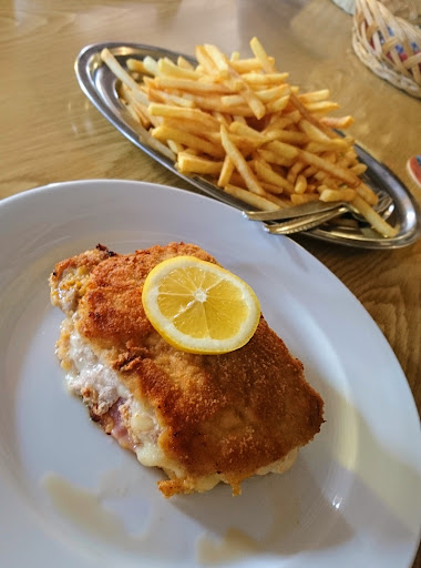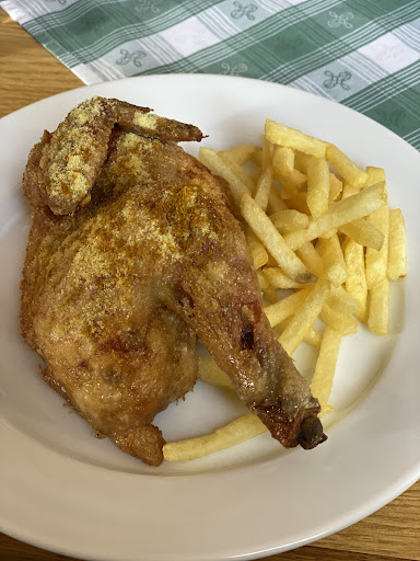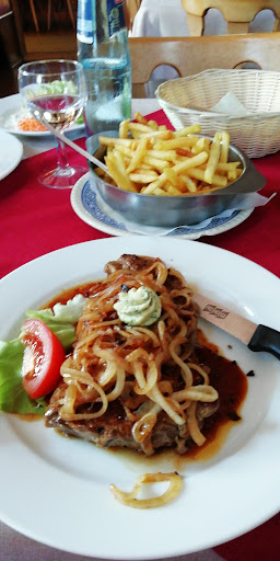 Read moreWaren vor kurzem auf Empfehlungen dort Essen. Hatten vorher reserviert. Ein unscheinbares und etwas in die Jahre gekommenes Gashaus,was uns aber nicht weiter gestört hat. Oberhalb der Gaststätte sind ausreichend Parkplätze vorhanden. Haben einen Tisch in einer etwas dunkleren Ecke bekommen mit Blick auf eine Kinder Spielecke. Wären lieber draußen gesessen da es wirklich sehr warm war an diesem Abend. Leider waren draußen alle Plätze belegt. Uns wurde von Bekannten das Hähnchen empfohlen was wir dann auch bestellt hatten. Anscheinend sei dies eine Spezialität des Hauses. Leider können wir diese Ansicht nicht teilen. Beide Hähnchen waren so stark salzig das man die knusprige Haut kaum essen konnte. Gut gewürzt ist sicherlich wünschenswert beim Hähnchen aber derart viel Salz macht es dann einfach nur ungenießbar. Dazu gab es Pommes welche recht lecker waren. Über den Service kann man nicht meckern. Die Bedingung war aufmerksam und wirklich freundlich. Das Hähnchen war zwar nicht so wie wir es uns erhofft hatten aber es gibt ja noch andere Gerichte auf der Speisekarte die wir bei Gelegenheit vielleicht noch...