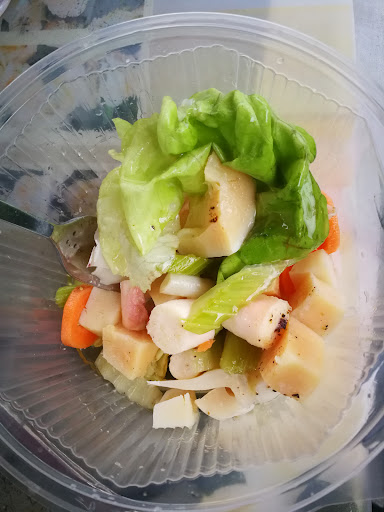 Die Pizzeria hat drei Mittagsgerichte auf der Karte (Hauptspeise, Salat, Nachspeise) zum Preis von 8,50 € - da kann man nicht meckern. Wir haben Casarecce mit einer Kapern Knoblauchsoße bestellt. Als ich Parmesan zu den Nudeln wollte, hieß es, zum Fisch gebe es eigentlich keinen Käse, aber wir seien halt in Deutschland. Das ist richtig. Wir sind in Deutschland. Ich bekam also trotzdem meinen Parmesan. Es war der Soße aber weder ein Fisch anzuschmecken noch stand das so auf der Speisekarte. Da standen Kapern, Oliven und Knoblauch. Kapern sind keine Fische. Als ich nachfrage, wo denn da der Fisch wäre, hieß es, der sei püriert.