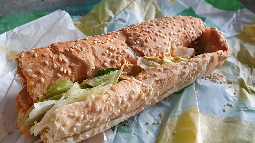 Read moreAusser uns beiden waren noch 2 Kunden bei Subway um 19.30 uhr. Die Kundin vor uns sollte für jemanden chicken terrijaki mitbringen, war nicht da. Darauf hin rief sie die Person an um nachzufragen, was er stattdessen möchte. Was es war, weiss ich nicht, aber auch dies gab es nicht. Bei uns war es das es eines meiner lieblings toppings nicht gab. Es war als würden sie gleich feierabend machen. Wobei die öffnungszeit bs 22 uhr ist. Jede Sauce die wir wählten war leer, aber zumindest noch vorrätig. An Getränken gab es nur Pepsi und Schwipschwab. Kein Wasser oder sonstiges. Ach, tschuldigung caprisonne gab es noch. Die 2 vor uns haben ohne sandwiches den Laden verlassen. Somit waren wir alleine im Laden. Dann ging einer der Angestellten hin und fing mit dem Strassenbesen den Laden an zu fegen, werend wir da sassen und assen und das ganz ungeniert um uns herum. Sorry, aber auch in einem Fastfood Restaurant darf das nicht so laufen. Auf jedenfall eine glatte 5- wäre es mit einer...