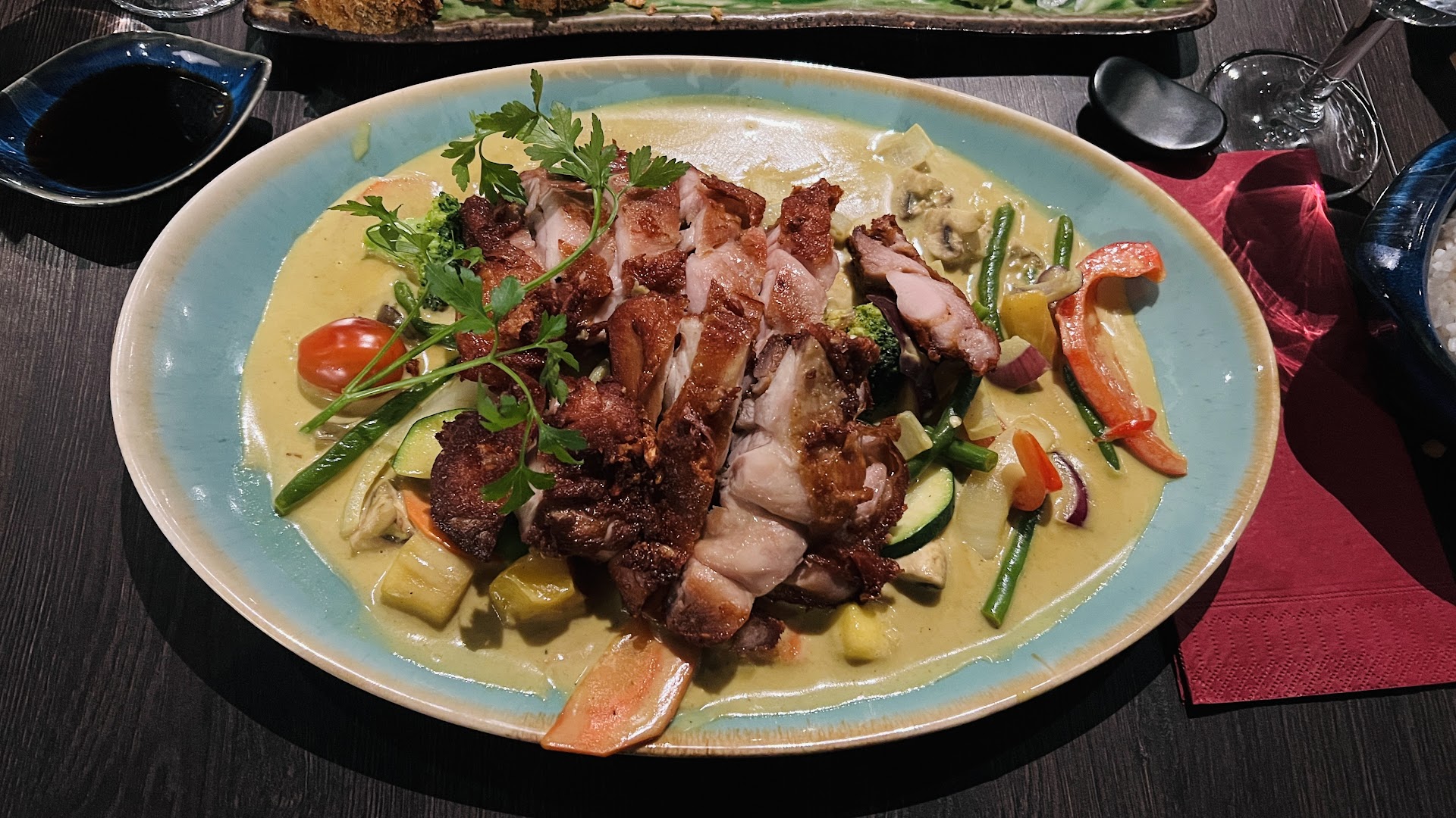 Read moreDer Laden war gut besucht und wir haben zum Glück noch einen Platz bekommen. Das Essen welches wir bestellt haben war wirklich ausnahmslos sehr lecker. Lediglich war das Gemüse im Curry ziemlich groß geschnitten wodurch man es nicht so in einem Essen konnte. Da wäre es besser wenn es etwas kleiner geschnitten wäre.