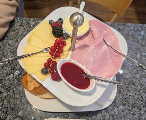 Die Bäckerei wirkt auf den ersten Blick klein und unscheinbar, aber dahinter steckt spürbar Tradition und Liebe zum Detail. Das Frühstück ist qualitativ wirklich auf einem sehr hohen Niveau: Käse und Wurst schmecken frisch und hochwertig, die Brötchen knuspern so, wie sie sollen, und selbst die Butter kommt nicht lieblos in der Plastikverpackung daher, sondern in einer kleinen Keramikschale. Solche Feinheiten zeigen, dass man hier mitdenkt.