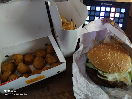 Read moreMein Burger Whopper) qar leider kalt (zehn Minuten auf das Essen gewartet). Dazu wurden meine Fritten vergessen. Ich habe daran erinnert. Der Kassierer fragte (eine Minute nach Ausgabe des Essens und drei Mal nachschauen, was bestellt wurde), was bestellt wurde. Auf die Antwort King Size Menü wurde eine kleine Portion Fritten nachgereicht. Ja, ich weiß: Ich hätte nach dem ersten Bissen an die Theke gehen sollen. Aber nach fast sechs Stunden Autofahrt mit Staus, Unfällen, Streckensperrungen wollte ich einfach nur schnell etwas essen. Es war nicht schnell und nicht wirklich (kalter Burger) lecker. Burger King hat in den letzten Monaten nach der Pandemie stark nachgelassen. Egal, welche Filiale ich besucht habe. Schlimm sind die unaufmerksamen und dann frechen Mitarbeiter. Der Sitzplatz war leider auch nicht gewischt. Aber nach langer Autofahrt achtet man beim Hinsetzen nicht auf den Tisch und die Sitzgelegenheit. So bald werde ich keinen Burger King mehr aufsuchen. Und ich bin immer gerne zum Burger King (ziehe ich dem Papp-Essen von...