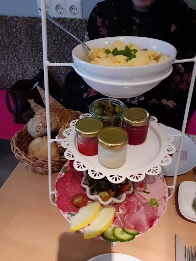 Süßes Café mit toller Deko und sehr leckeren Kuchen. Eigentlich zum Wohlfühlen wenn da nicht das Personal(oder vielleicht Teilinhaberin) wäre - Es gibt eine Bedingung/Inhaberin ?! , etwas jünger , die immer sehr freundlich und positiv wirkt und sich schnell um die Belange kümmert. Jedoch bedient da auch noch eine andere Person, die immer wenn ich da war, rauchend vor der Tür saß (und ja jeder darf Pausen machen ) aber die einen nicht freundlich begrüßt und einen wortlos alleine ins Café gehen lässt. Dort darf man dann auch noch länger warten, bis man von dieser Person bedient wird. Das hat mir das Gefühl gegeben , zu stören. Das ist jetzt schon ein paar Mal vorgekommen . Ich hatte das einer Freundin erzählt, die letztens zum ersten Mal mit Baby da war und mir gesagt hatte, durch diese spezielle Art hat sie sich dort sehr unwillkommen zu sein und das sollte nirgendwo passieren wo man sein Geld lässt , egal ob nur für nen Kaffee oder die Frühstücksplatte Deluxe. Schade denn ansonsten ist es ein süßes Café...