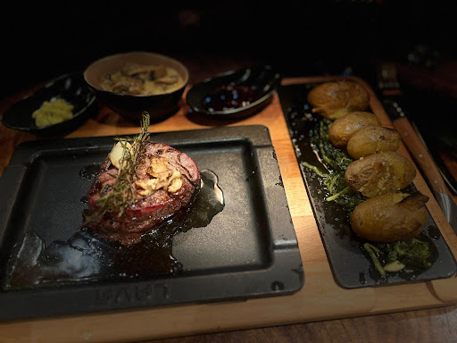 Read moreWir haben zu viert das neue Restaurant getestet. 2x Rindfleischspieß, 1x Burger und 1x Lachs. Zuerst einmal das Ambiente. Hier wurde einiges getan, hat uns allen sehr gefallen - man kann drinnen und draußen essen. Nun zum Essen: Als Vorspeise hatten wir Brot und Dip bestellt - beides waren getrennte Gerichte, alleine das Brot (5 Weißbrot Scheiben) haben 3,90€ gekostet, der Dip kam noch extra. Der Rindfleischspieß sollte 250gr haben, mit Pommes und Beilagensalat kommen - es war ein Fleischspieß mit Paprika- und Wurstscheiben dazwischen. Also etwa 5 oder 6 Fleischstücke (aber niemals 250gr, auch wenn durch das Braten das Gewicht schrumpft), teilweise war das Fleisch richtig verbrannt - Die Hälfte der Stücke konnten wir nicht essen, da entweder viel zu zäh, oder knorpelig - nicht schön. Die Pommes waren OK, etwas fettig - zum Beilagensalat kann ich nichts sagen, da dieser bei beiden Tellern erst gar nicht mit an den Tisch gebracht wurde (das Gericht stand aber mit jeweils 22,90€ voll auf der Rechnung). Bei dem Burger fehlte das obere Brötchen (vielleicht war es so gewollt), das Hackfleisch war ziemlich fade und geschmacklos (das kam erst durch die Soßen). Der Lachs hat scheinbar geschmeckt. Auf ein drittes Bier haben wir dann verzichtet, da 3,90€ für ein 0.3l Bier zwar mittlerweile scheinbar normal ist - uns aber zu teuer erscheint. Nur auf Rückfrage wurde dann der Rechnungsbetrag aufgrund der fehlenden Salate gekürzt. Die zwei Portionen Brot (je 3,90€) wurden herausgenommen. Sorry, aber der erste Eindruck war bei uns nicht der beste, aber wir kommen gerne mal wieder, den jeder hat eine zweite Chance verdient...,...ich hoffe die Kritik wird angenommen...