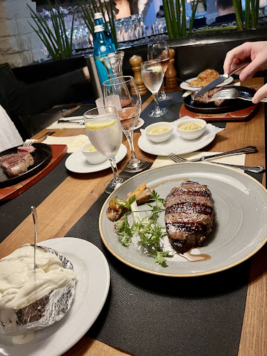 Der Steakzubereiter, den man von den Tischen dort sieht leistet gute Arbeit und macht einen engagierten Eindruck. Die Kellner jedoch sind nicht gerade das, was man sich vorstellt, vor allem einer, der erst seit einem Jahr ca dort arbeitet, ist von seiner Ausstrahlung unerträglich. Die Beilagen für ca 4,- sind jahrelang vielleicht mal geringfügig (max 1,-) erhöht worden. Es wurde stets all die Jahre ein großer Löffel Soße mit über das Gemüse z.B. serviert. Plötzlich, ohne Ankündigung wurde mir Brokkoli OHNE Soße hingestellt, auf Nachfragen dann ein Schälchen Soße gebracht. Auf meiner Rechnung stand dann ZUSÄTZLICH 3 EURO. (DREI) Was eine Unverschämtheit - für mich - zumal ich über 13 Jahre dort Stammkunde war, man mich kannte und ich wirklich sehr wenig Soße (nur zum abschmecken) verlangte, halt so "wie immer" bisher all die Jahre.