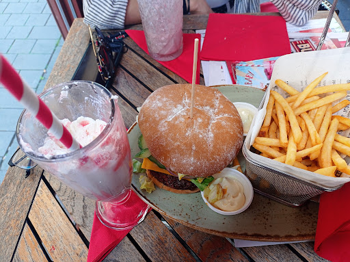 Dann rein in den Laden. Es ist sehr voll,laut. Tisch zugewiesen bekommen. 6 Leute an zwei auseinander stehenden kleinen Bistrotischen. Trinken wäre daran möglich. Essen, niemals. Beschwerde beim Personal. Nach etwa 10 Minuten bekamen wir einen Ersatztisch. Ein 4er Tisch mit 6 Personen. naja, besser als nix. Aber direkt am Toiletteneingang. puhh. Stress, nervig. Aber man könnte an ihm essen. Die Kellnerin Dana sehr freundlich, aber man merkte sie ist gestresst. irgend wie alle Mitarbeiter. völlige überforderrung. 2,manchmal 3 Kellner arbeiten, 2 sitzen und draussen im rücken und genießen ihre pause. nix gegen pause, aber der laden voll. und dann auch noch sichtbar für die Gäste das sie pause machen. wirkt nicht gut.