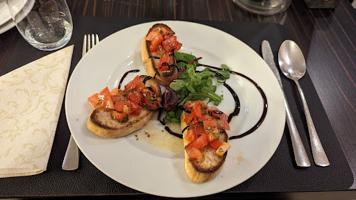 Das Gallo Nero haben wir über The Fork gefunden. Wir hatten Bruschetta 3 Brote (5,90 Euro) als Vorspeise. Dazu gab es zwei kleine Brötchen, leckere Butter und schwarze Oliven. Die Vorspeise war schon super lecker. Als Hauptgang hatten wir eine Pizza 🍕 Rucola Parma (12,50 Euro) und die frische Nudeln Ravioli Inburrati (12,50 Euro). Beides war extrem lecker. Bei den frischen Nudeln war die Portion nicht sehr üppig, im Verhältnis zum Preis, jedoch sehr fair. Der Pizza Teig war genau mein Geschmack super fluffig. Einzig das Dessert Tiramisu (5,10 Euro) war für mich im Verhältnis zum Rest, etwas zu warm und Geschmacklich etwas dünn, zumindest nach meinem Geschmack. Nun noch ein paar Worte zu den Getränken. Die Cola (0,2L, 2,50 Euro) empfanden wir als nicht kalt genug, das San Pellegrino Wasser (große Flasche 0,7L, 6 Euro) hatte eine gut gekühlte Temperatur, jedoch der Cappuccino ☕ (4 Euro) war gar nicht unser Geschmack (sehr heiß, geschmacklich evtl. etwas verbrannt und einen sehr instabilen Milchschaum) da haben wir schon wesentlich leckeren getrunken. Wir empfanden 4 Euro auch dafür nicht gerechtfertigt. Geschmack kann sehr stark variieren, jedoch würde ich empfehlen den Cappuccino lieber in einem guten italienischen Café zu trinken. Abschließend noch ein paar Worte zum Ambiente. Das Restaurant liegt in einer Seitenstraße. Den Gastraum empfanden wir als gepflegt und stilvoll eingerichtet. Nur der Toilettenbereich und der Außenbereich (dahinter ein Parkplatz, der Bereich abgetrennt mit roten Pflanzsteinen...) war, nach meiner Auffassung, nicht ansprechend gestaltet. Schade. Bedient wurden wir sehr freundlich, das passte sehr gut. Zusamfassend würde ich das Gallo Nero so im Detail bewerten. Essen 4,5 von 5 Sterne Getränke 4 von 5 Sterne Ambiente: 3-3,5 von 5 Sterne (wegen des Außenbereichs und des Toilettenbereichs), ansonsten 4 von 5 Sterne. Ist ja auch ein wenig persönliches empfinden und jeder hat davon eine andere Vorstellung. Service 4,5 von 5 Sterne. In der Summe, da das Essen für mich das wichtigste ist, würde ich dem Gallo Nero 4 von 5 Sterne geben und das Restaurant auf jeden Fall weiterempfehlen und auch wieder besuchen....