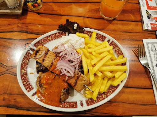 Read moreNach Starlight Express am 21.05.25 wollten wir noch etwas Essen.Das H+Hotel was schon eine Enttäuschung für das Geld.An der Rezeption wurde uns eine Liste gegeben für Restaurants.Tratoria Momo hatte einfach unverschämte Preise,war auch nicht der Kracher in diesem Kioskartigen Gebäude.Dann blieb leider nur der Grieche übrig.Ein sehr verwahrloster Hund,lag in der Eingangstür.Eigentlich hätten wir da schon gehen sollen. Das Lokal hat eventuell mal bessere Zeiten erlebt. Jetzt sehr runtergekommen,die Menge an verstaubten Statuen und Plastikblumen,aber allgemein das doch sehr vernachlässige, renovierungsbedürftig Lokal ähnelt er einer Bahnhofs-Pommesbude. Speiskarten, wie beim Italiener als Platzdecken, blieben aber nicht liegen,sondern waren total zerlummt und wurden weggenommen,kamen wohl später wieder auf die Tische.Als das Essen von einer älteren Frau gebracht wurde, war der 1.Eindruck, gegessen und wieder ausgespuckt. Sorry alte Teller,Personal schmutzig gekleidet und dann Ayva aus dem Glas auf Fleisch das den Fotos nicht im geringsten ähnlich sah.Aubergine nicht gebraten sondern paniert und dann auch noch zum Teil roh.Salat mit Putenfleisch lieblos das gesamte Fleisch auf den Teller geknallt. Gehört geschnitten,Mengen an Krautsalt dabei, und dann Preise 13.90 Salat und 16.50 das undiffinierbare AyvaReis "Ungebratene Fleisch" mit locker 200g Ayvasosse drauf. Das schlimmste kam am 22.mein Mann hatte ab Morgens Magenkrämpfe, musste spucken und Magenprobleme bis heute zu am 24.05. H+ Hotel sollte seine Empfehlungen mal überdenken und dieses Lokal mal über eine Schließung nachdenken. NICHT...