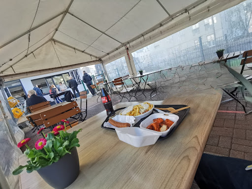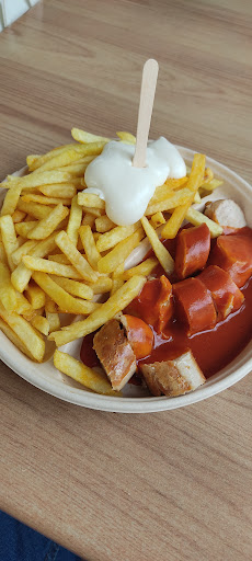 Gut gemeint ist leider nicht gut gemacht! Als wir hier waren, gab es weder Chicken-Nuggets noch Falafel, obwohl beides auf der Preisliste steht. Gut, kann mal vorkommen. Aber die bestellte Pommes Mayo Currywurst für durchaus günstige 5,20€ (inkl. Coca Cola!) hat's dann auch nicht rausgerissen: In einer Plastik-Suppenschale wurde alles unappetitlich aufeinandergetürmt: Zuunterst die Currywurst, darauf dann die Pommes, darauf dann ein Riesen-Batzen Majonnaise! Es hätte alles so lecker sein können... Die Grund-Zutaten waren für sich betrachtet einzeln sicher nicht schlecht, aber wenn ich Eintopf will, bestelle ich den auch! Im Detail: Die Currywurst, an die man erst herankommt, nachdem man mindestens die Hälfte von Pommes und Mayo(!) gegessen hat, ist nicht geschnitten, sondern zerfetzt. Leute, Messerschärfer existieren, auch Wurstschneider dürfen regelmäßig gewartet werden! Die Pommes wurden fast vollflächig von Mayo abgedeckt. Großzügig ist ja toll, aber wenn ich Mayo mit Pommes gewollt hätte, dann hätte ich das so bestellt! So musste ich die viel zu viel Mayo erst von den Pommes abstreifen und anschließend hatte ich nur noch mayo-durchtränkte Pommes Frites...